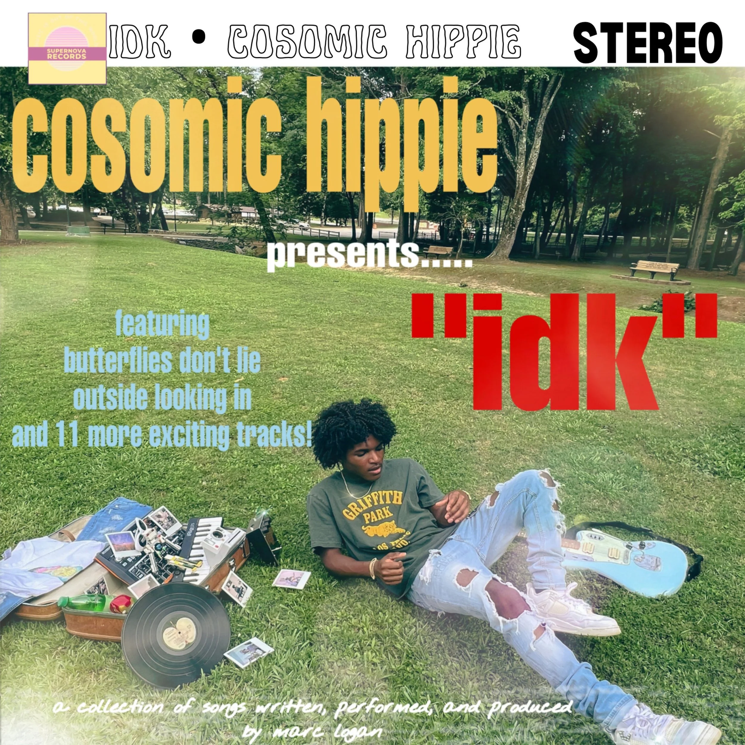 Explore the genesis of Cosomic Hippie with 13 tracks ranging from love songs like “Butterflies Don’t Lie” and “Fav song”, introspective songs like “Outside Looking In”, and headbangers like “Life’s a Trip” and “IDK”